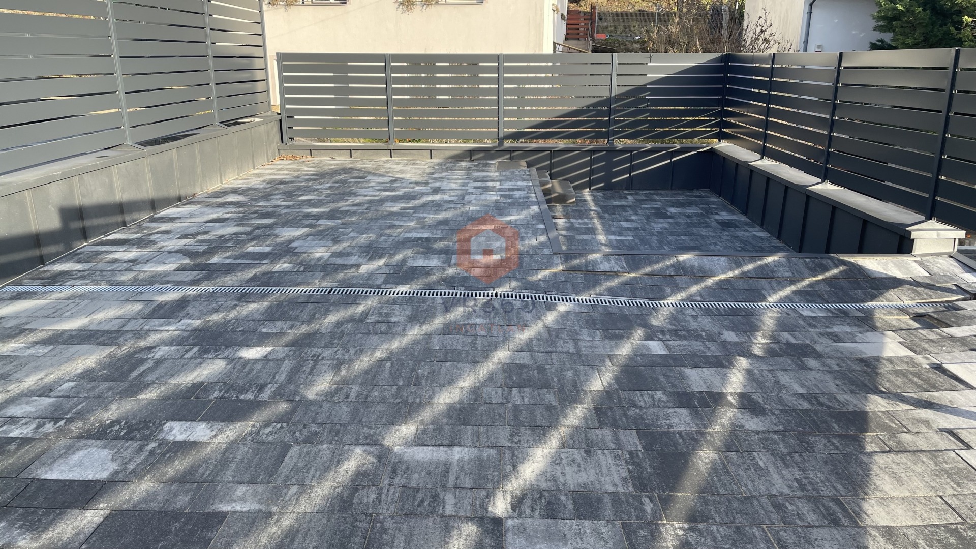 -privát térkövezett 100 m2-es kertkapcsolat , nagyméretű terasszal