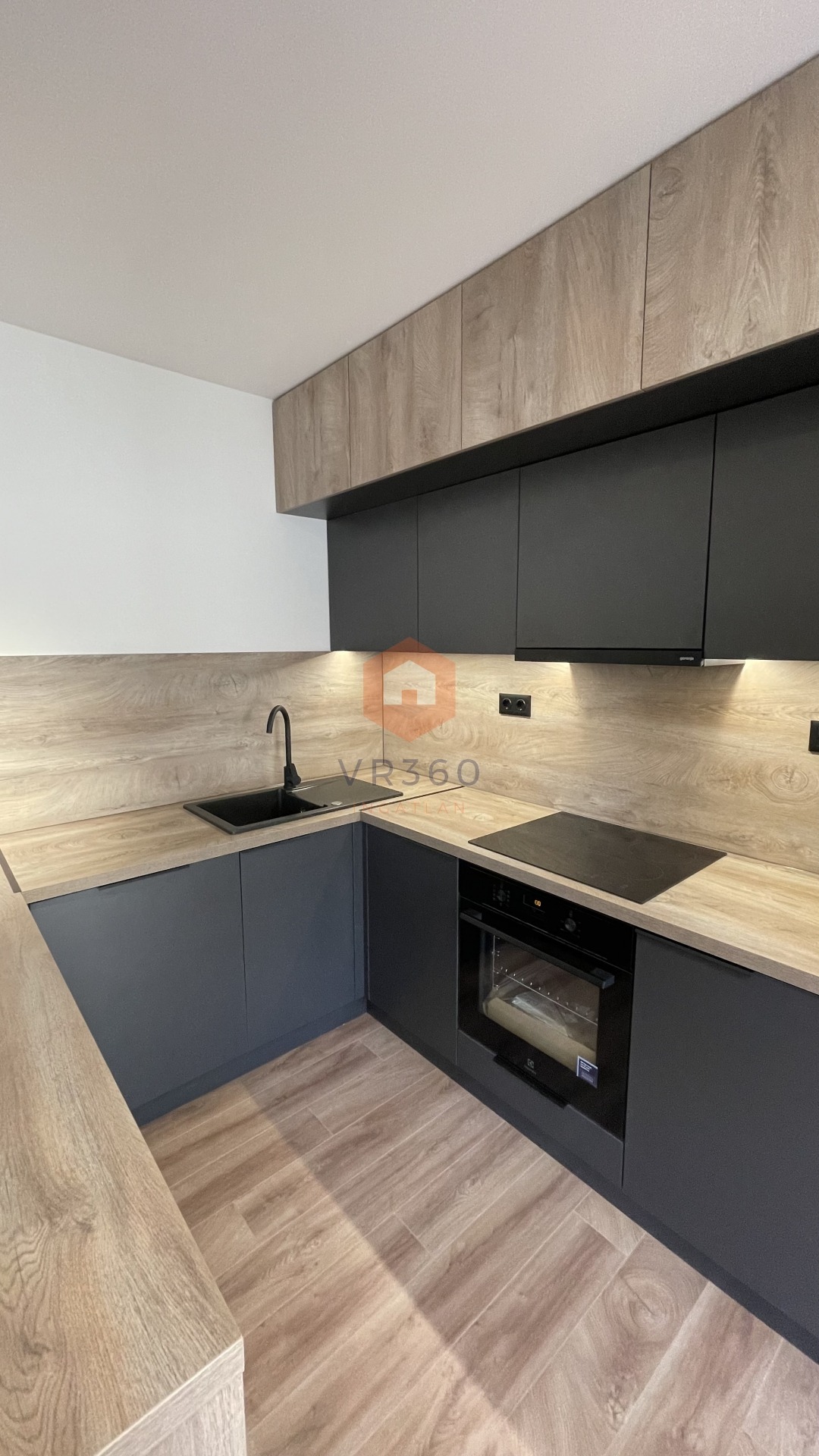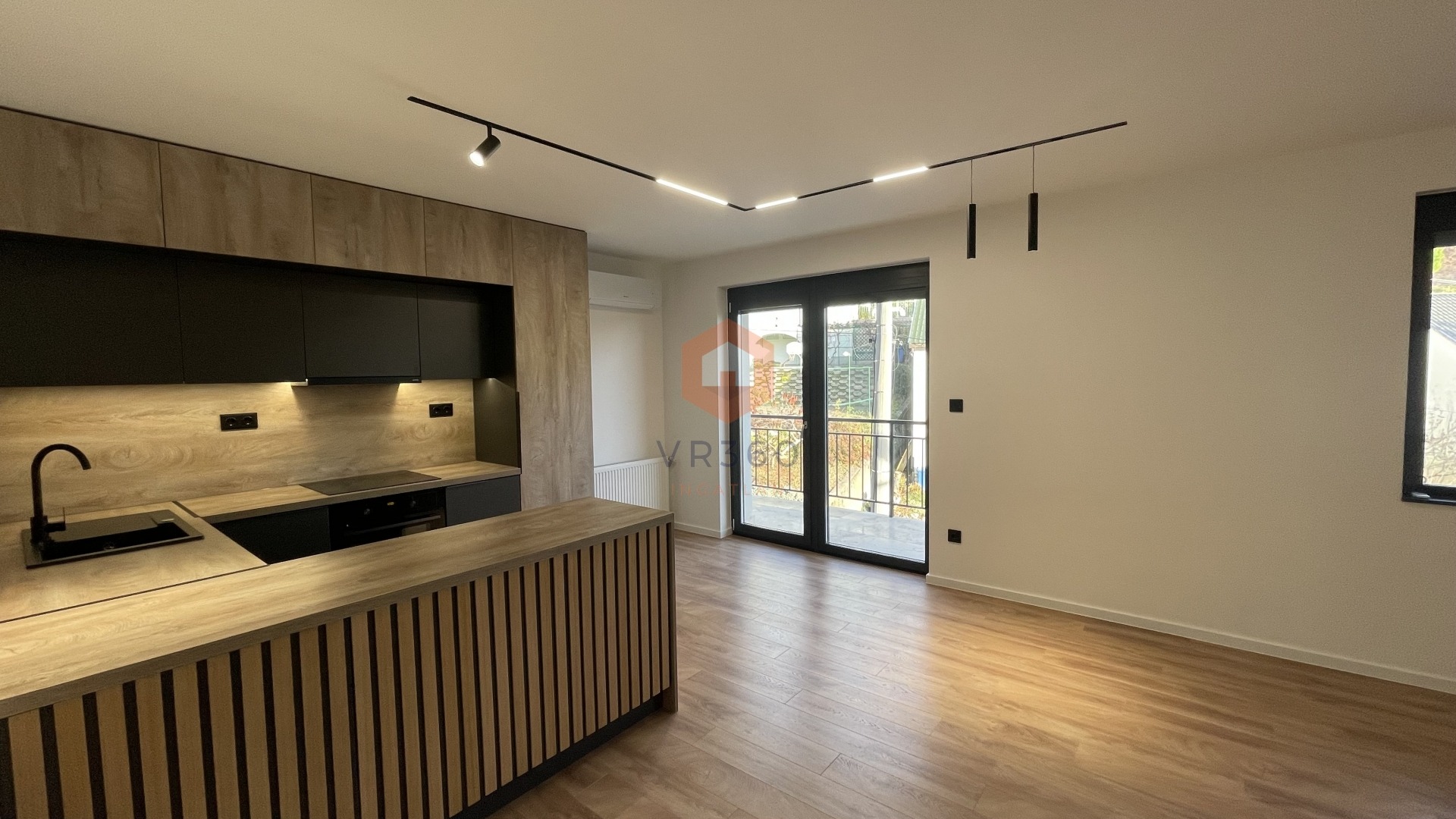 -teljesen gépesített amerikai konyhás nappali, beépített sütő, indukciós főzőlap, elszívó, beépített hűtő, mosogatógép, a nappaliban helyet kapott egy bioetanol látványkandalló, valamint az egyik oldalon egy akusztikus modern falpanel, hűtő-fűtő klíma, különleges világítás technika,