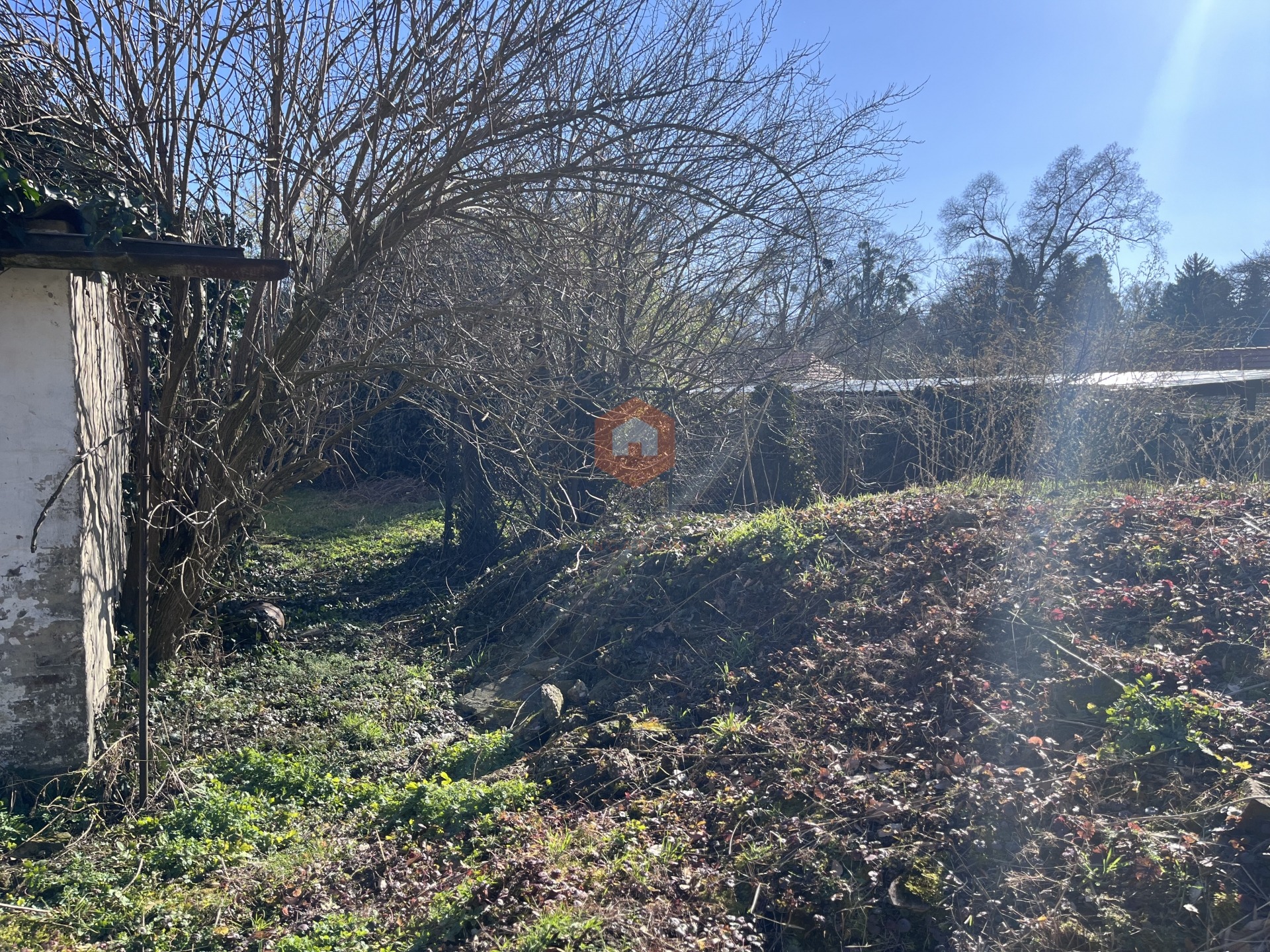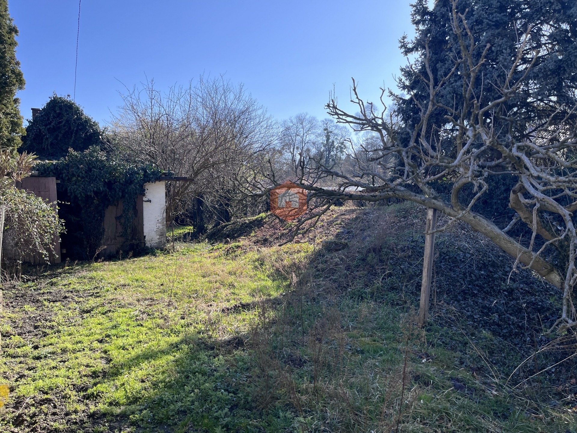 A telken különálló garázs, a telek közepén